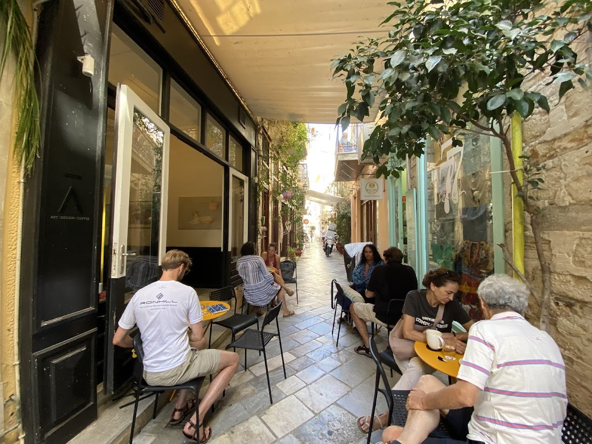 This café also hosts captivating art exhibitions and live music events, making each visit a chance to immerse yourself in the local culture. As Fragkiskos Kampelis explains, it’s a special place to enjoy your drink while surrounded by unique content that feeds both the mind and the spirit.